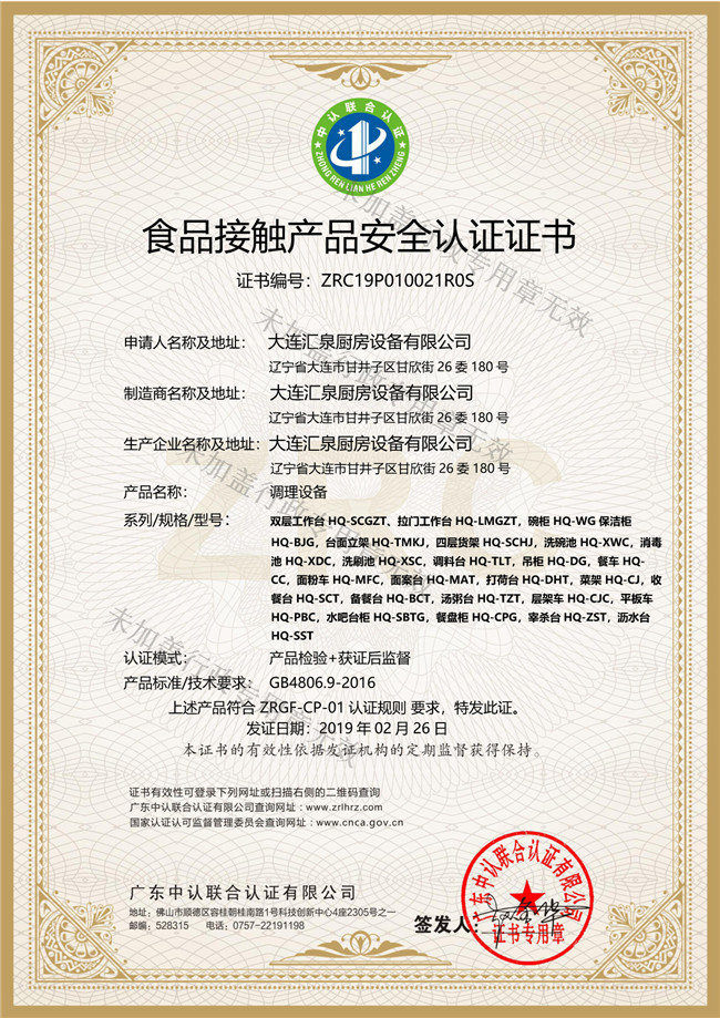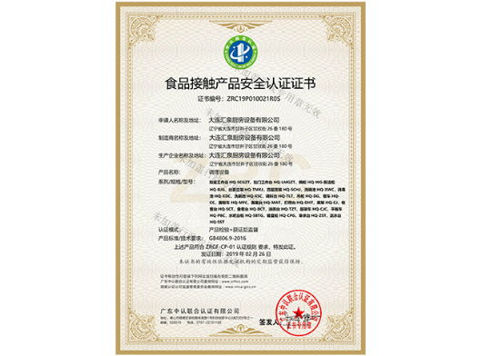 調理設備食品接觸認證證書